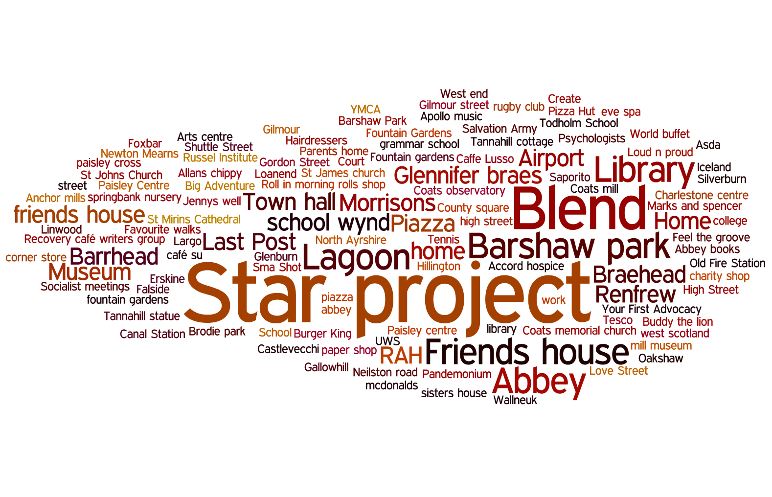 Bringing all the text together from the items mentioned within the cognitive maps starts a conversation about the importance of different assets to the community (and how assets are defined)